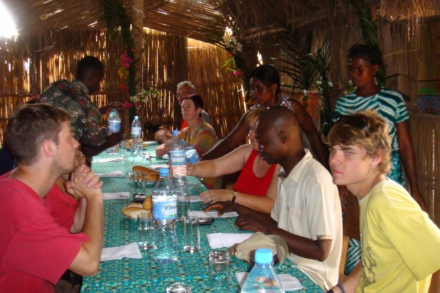 Les repas sont pris sous une paillote construite en materiau local, par les villageois